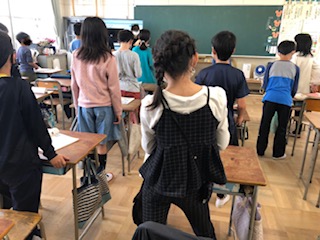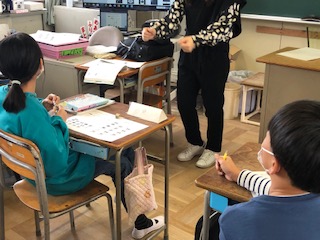 今日の5年生の外国語授業は、他校の指導教諭が行いました。校内の教員も参観しました。