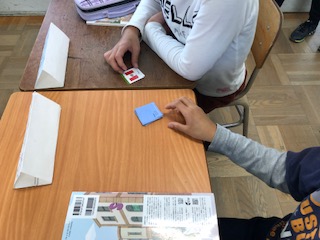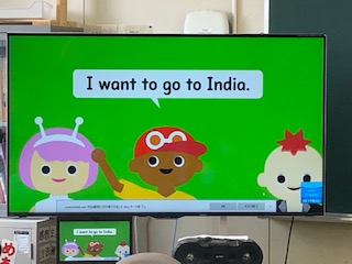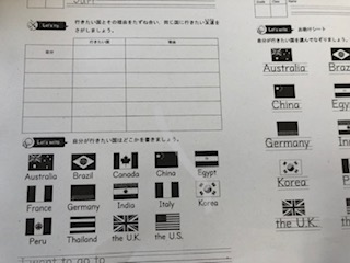 今日は、どの国に行きたいかを英語で会話することを学びました。カードも使って会話しています。