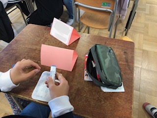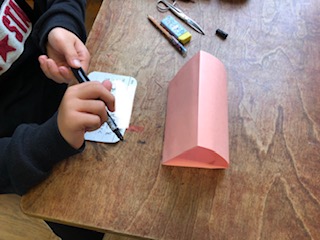 作品展に出す作品の説明コメントを作っています。作品への思い、作る時に工夫したところ、苦労したところ、見てもらいたい観点などを書いています。作品展の保護者鑑賞日は11月12日、13日です。