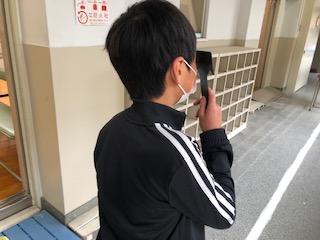 密な状態を避けるため、廊下で行っています。