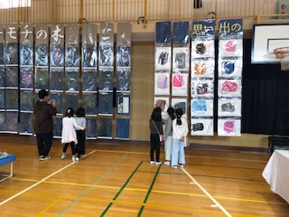 今日の午前中は児童が作品展を鑑賞します。子どもたちは他の学年の作品も熱心に見ています。(写真は3年生が鑑賞しているところです)