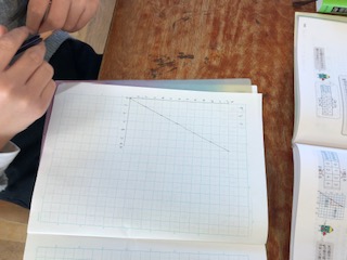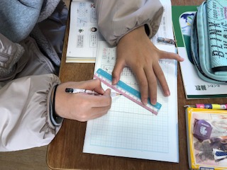 比例のグラフを定規を使ってかいています。