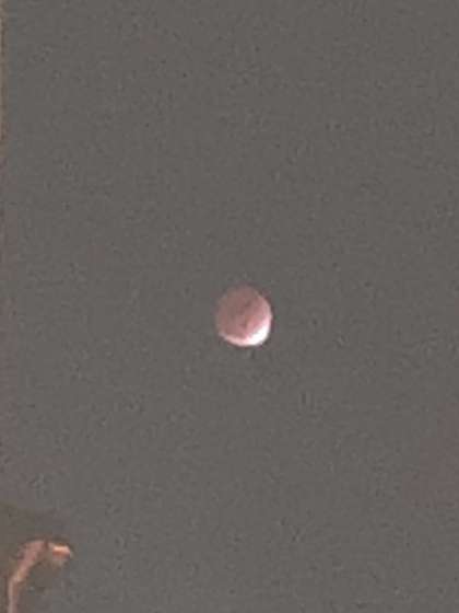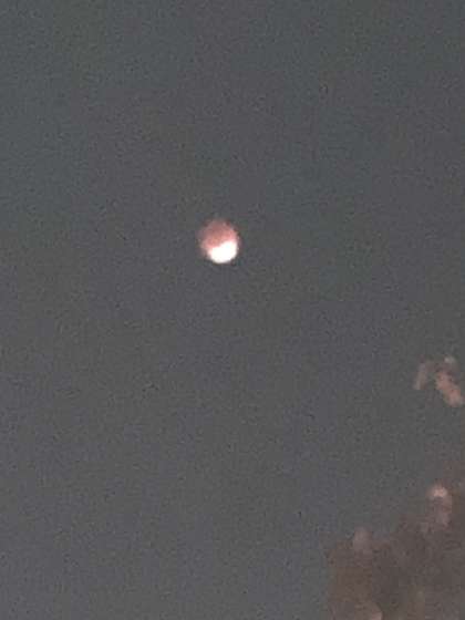 (上の写真)午後5時23分。月食が進んでいます。しかし、満月の輪かくがうっすらと見られます。いきいき活動に参加していた子どもたちもいっしょにみました。
