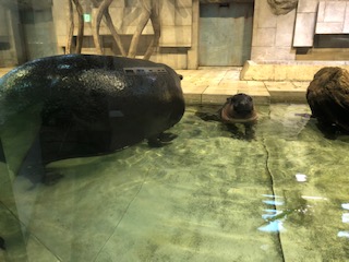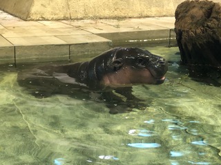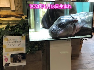 今年生まれたばかりのミニカバの赤ちゃんもお母さんといっしょに遊んでいます。