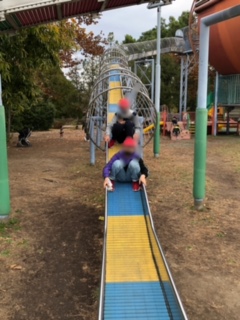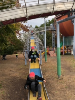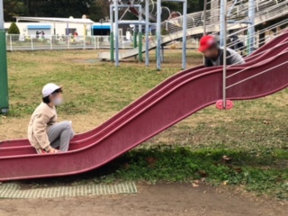 すべり台から次々と子どもたちが滑り降りてきます。たっぷり楽しんでいますね。