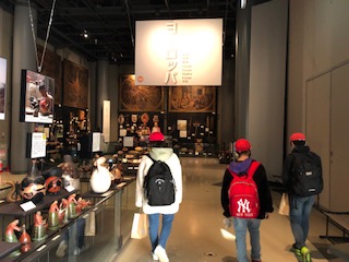 世界の国々のくらしがわかるように展示されています。見たこともないような物がいっぱいあります。子どもたちは不思議そうに見学しています。