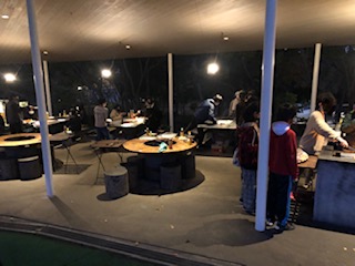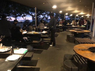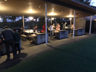 班ごとに炭があるところでバーベキューを始めます。5時過ぎにはあたりも暗くなってきました。