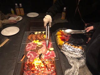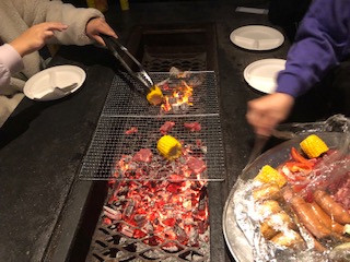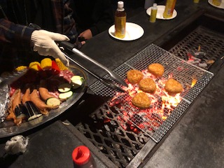 順番に具をのせてしっかりと焼いています。焼きおにぎりも網にのせられていました。