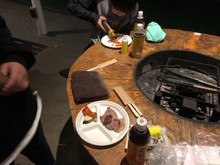 バーベキュー会場は換気も抜群で(外ですので)みんなと楽しく焼いて食べてと子どもたちは大喜びです。夕食にバーベキューを選んで正解でした。