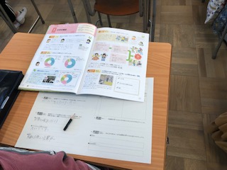 保健の授業です。けがについて学んでいます。