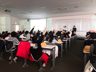 大阪経済大学の学生による防災学習です。(写真は5、6年生です)