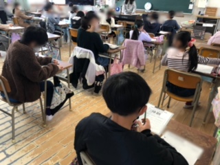 上と中の写真は、始まる直前です。調査用紙が配られ、スタートの合図を待っています。