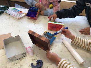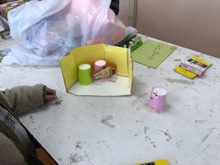 用紙した材料を使っておもちゃ作りが始まりました。
