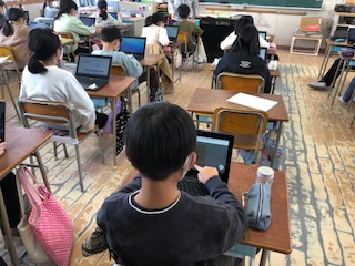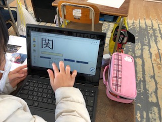 授業を見て回っていると、子どもたちが一人一台端末を使って学習している姿を見るのがふつうになってきています。4年生がなれた手つきで端末を操作していました。
