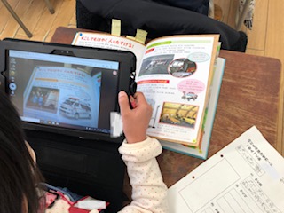1年生がタブレット端末を使っての学習しています。