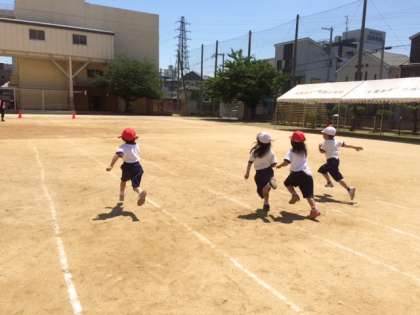 かけっこの練習をしました。まっすぐ走るって、難しい・・・・