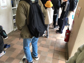 集団登校の班ごとに地区子ども会を行います。まず、高学年の班長が1年生を迎えに教室に行きました。そのあと、1年生を連れて地区子ども会の教室へと向かいます。