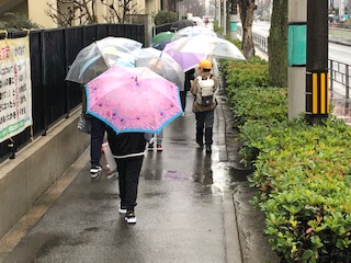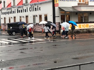 始業式のあとの地区子ども会も終わって、子どもたちは集団登校班ごとに下校していきました。