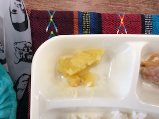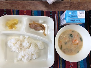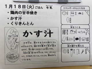 今日の給食は、かす汁でした。今日のように雪が舞うような寒い日には体を温めてくれますね。栗きんとんもでました。