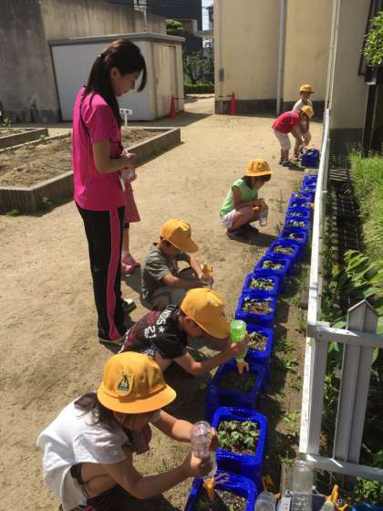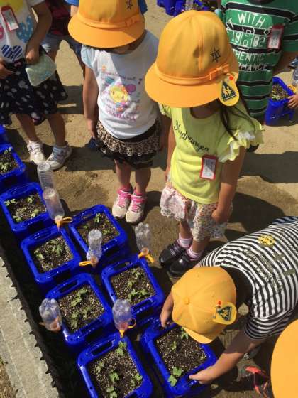 あさがおの芽が出てきました。がんばってお世話をしています。