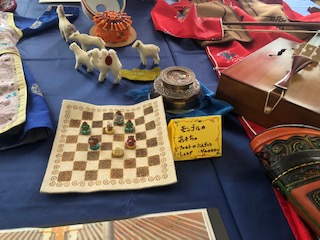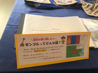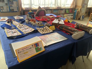 学校図書館には、モンゴルの服や楽器、おもちゃなどが展示されています。