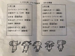 昨日の20日(木曜)にクラブ見学をしました。3年生が順番にクラブを見学していきました。(昨日は大阪市内の小学校のホームページが混み合って閲覧しにくい状況でしたので、本日、ホームページでお知らせします。)