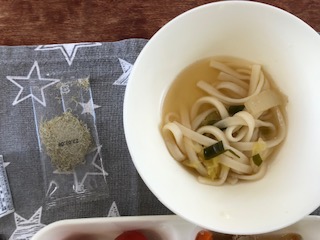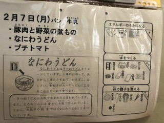 今日の給食には、きつねうどんをイメージしたなにわうどんがでました。とろろ昆布もつきました。