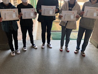 児童朝会では放送で漢字検定の合格者の表彰を行いました。4年生、5年生、6年生の各クラスの代表に合格証書をわたしました。受検した児童全員に検定結果がくわしく書かれた冊子が届いています。