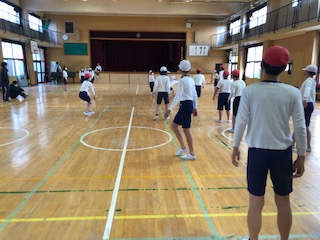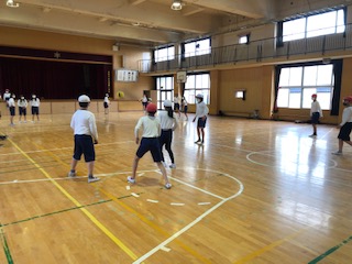 体育館では屋内スポーツクラブがドッジボールを楽しんでいました。