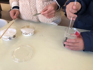 食塩とミョウバンの水への溶け方を比べています。同じ温度と量の水に食塩とミョウバンをそれぞれ溶かしていきます。