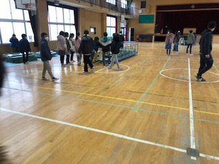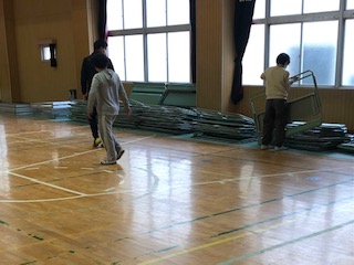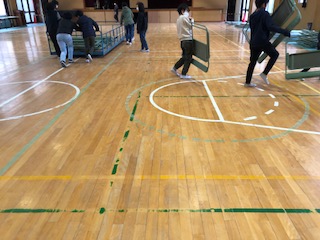 卒業式に向けて 講堂の用具の片付け2 5年生
