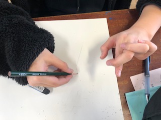 図工 手を描いています 6年生