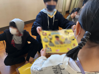 1年生から6年生へのプレゼントが渡されました。