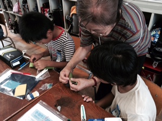 5月から始まった裁縫実習です。練習布での縫い方の練習を経て、フェルトを使った小物づくりをしています。今年も、はぐくみネットのご協力をいただき、家庭科ボランティアにきていただいています。子どもたちは、ずいぶん針の動かし方に慣れてきました。