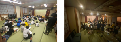 画像は、昨晩おこなわれました、お楽しみ会と1日の反省会の様子です。