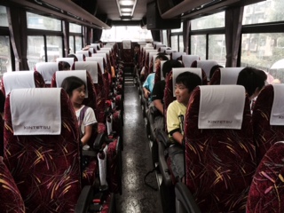 あいにくの雨での出発ですが、子どもたちは元気いっぱい!