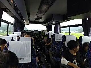 バスに揺られ約2時間、道の駅まほろばにて休憩中です。バスの中では、音楽を聴いたり、バスレクをしたりして盛り上がりました!