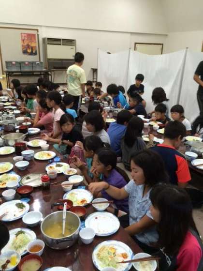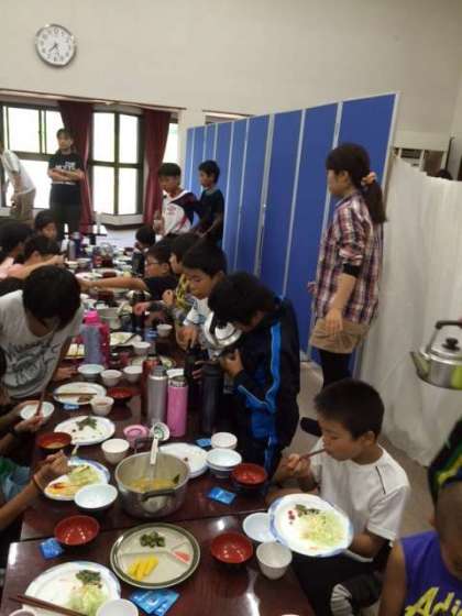 そろそろ朝ごはんが終わります。山に持って行くお茶を水筒に入れています。