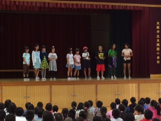今日は、後期の代表委員紹介です。各クラスの代表委員が全校児童の前であいさつしました。