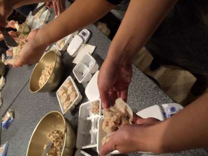 蓬莱に来ています。只今、焼売作りにチャレンジしています。