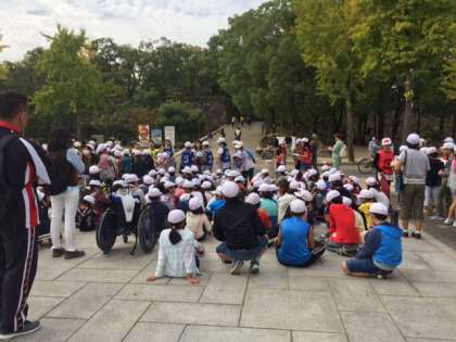 学校を出発して、大阪城に着きました。そろそろオリエンテーリングが始まります。