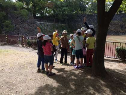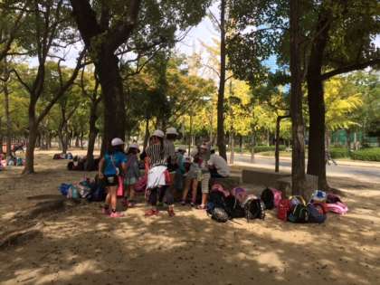 早いグループはもう戻って来ています。グループで反省会をしています。
