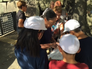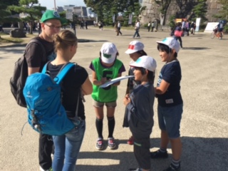 オリエンテーリングの後は大阪城を見学して、外国語活動をしています!