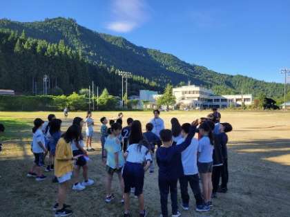 予定通り朝の集いを行いました。朝から元気にラジオ体操です