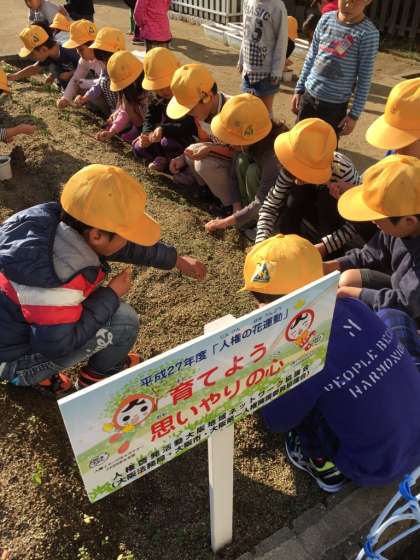 「人権の花運動」で植えたチューリップが芽を出し、生活科の時間に雑草ぬきをしました。花が咲く日をみんな楽しみにしています。