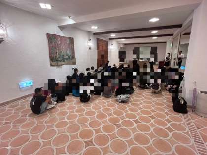 志摩スペイン村遊園地をあとにして、5分ほど歩いて隣の志摩スペイン村ホテルに到着。ホテルの豪華さに歓声があがっていました。