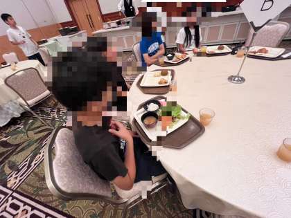 ホテルの朝食バイキングで、子どもたちも大満足。みんなよく食べていました。