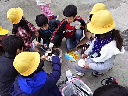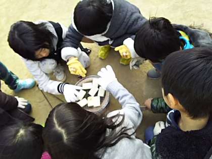 社会科の体験学習で、七輪を使ってお餅を焼きました。