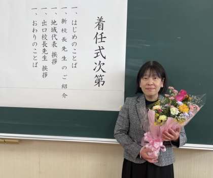 本日、地域の方、P西っこの皆様、教職員で 出口 みか 新校長先生の着任式を行いました。