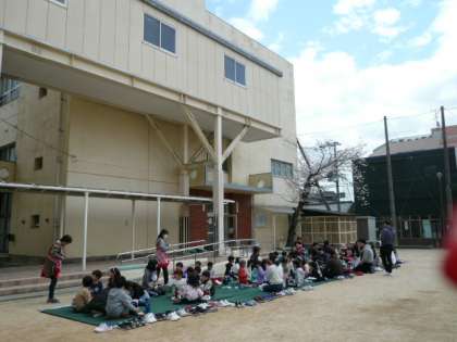 3日(木曜日)午後、本校運動場で「お花見会」が開催されました。